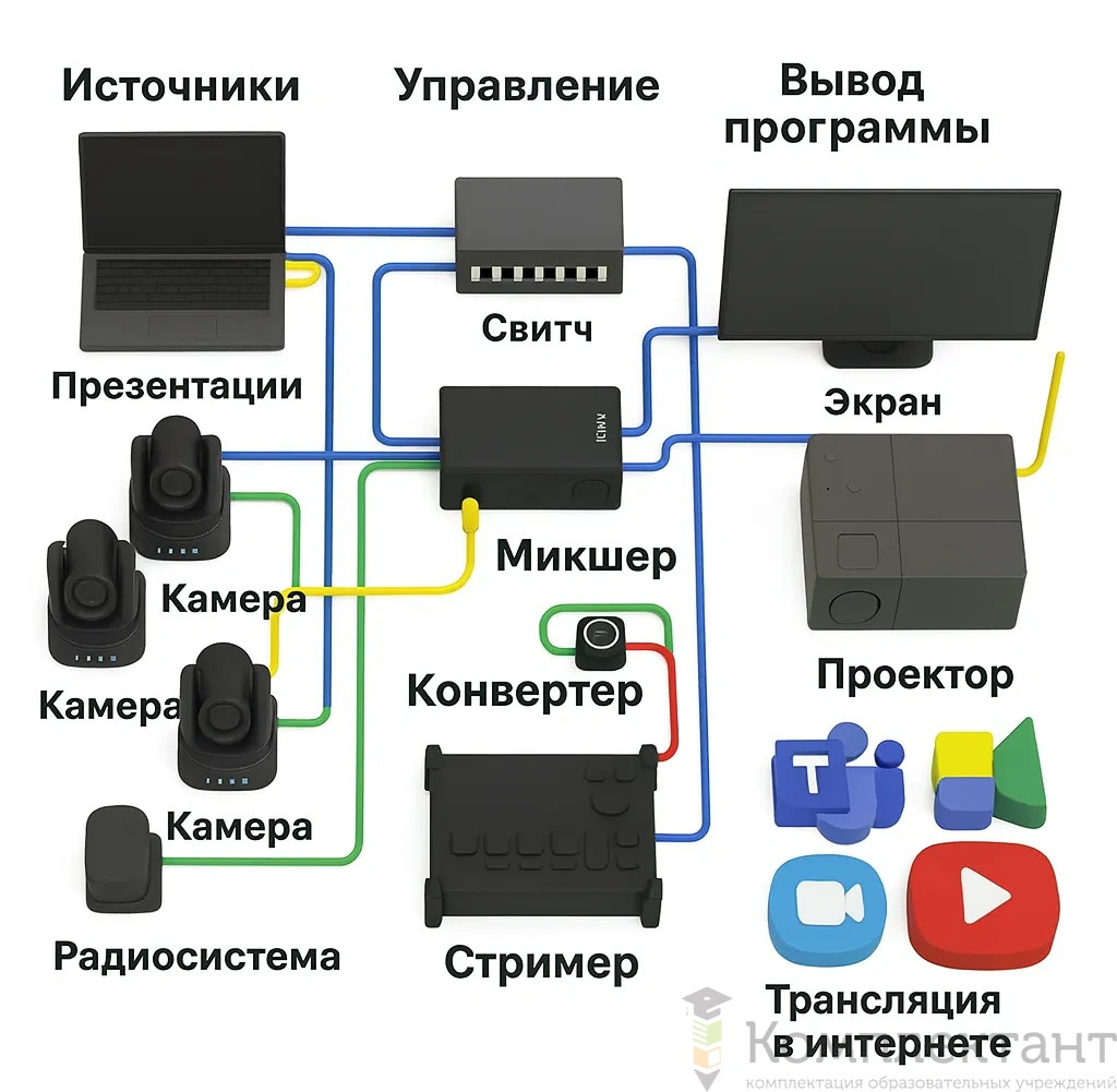 Комплект для стриминга Innovator Streamer Kit — это готовое решение для образовательных учреждений, которое обеспечивает полный цикл видеопроизводства: от записи и обработки до трансляции. Использование данного набора позволяет вовлекать учащихся в современные медиатехнологии, формировать навыки работы с профессиональной техникой и создавать образовательный контент высокого уровня.
