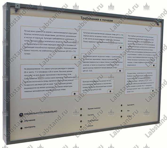 Назначение: Стенд-планшет предназначен для изучения основных требований к почвам в учебном курсе «Почвоведение».