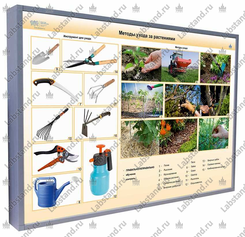 Стенд-планшет предназначен для изучения методов ухода за растениями.