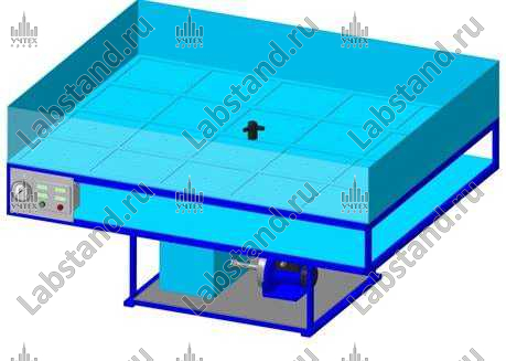 Состав: рамная конструкция, поддон с прозрачной крышкой и перфорированным дном для сбора распыляемой воды, модель системы полива разбрызгивающего типа, бак для воды, насос, регулирующие задвижки, манометр, расходомер, мерные стаканы для установки под поддон (для измерения количества воды на единицу площади).