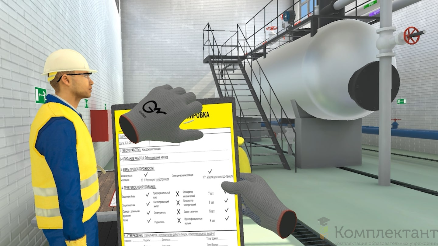 Виртуальный (VR) тренажер «Маркировка-блокировка» воссоздает ситуацию проведения процедуры блокировки-маркировки. В процессе которой пользователю необходимо временно изолировать оборудование от всех источников энергии и обеспечить такое обесточенное состояние, пока продолжается техобслуживание машины. В симуляции обучающийся должен провести физическую изоляцию электрической и гидравлической опасной энергии в соответствующем оборудовании при помощи инструментов процедуры блокировки-маркировки, а именно: установки блокираторов на систему, далее замка с индивидуальным ключом для пользователя и установки ярлыка маркировки с подписью, датой и указанием проводимых работ.